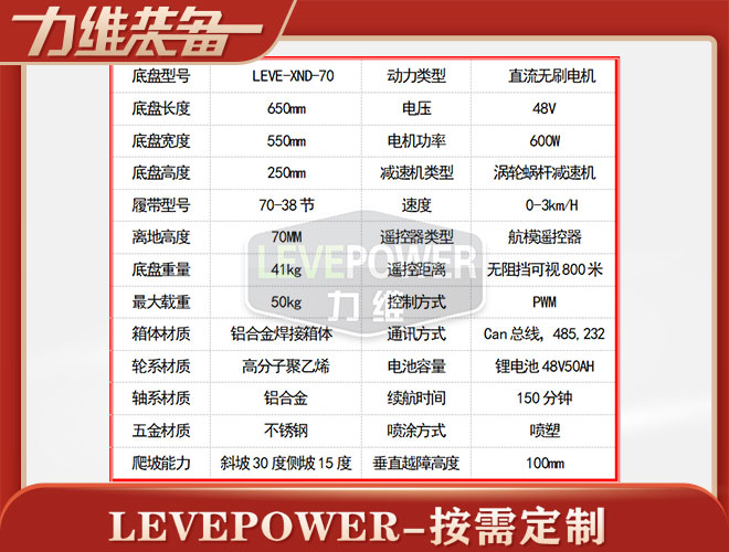 LEVE-XND-70特種橡膠履帶底盤采用天橡膠內(nèi)加凱夫拉纖維經(jīng)過高溫硫化擠壓成型,材質(zhì)輕、耐磨性能強(qiáng),是一款不錯(cuò)機(jī)器人橡膠履帶。